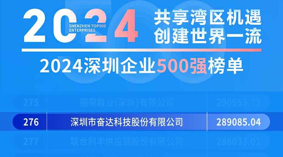 近日,深圳市企业联合会、深圳市企业家协会正式发布“2024深圳企业500强榜单”及《2024深圳500强企业发展报告》,leyu.乐鱼科技位列榜单第276位。
