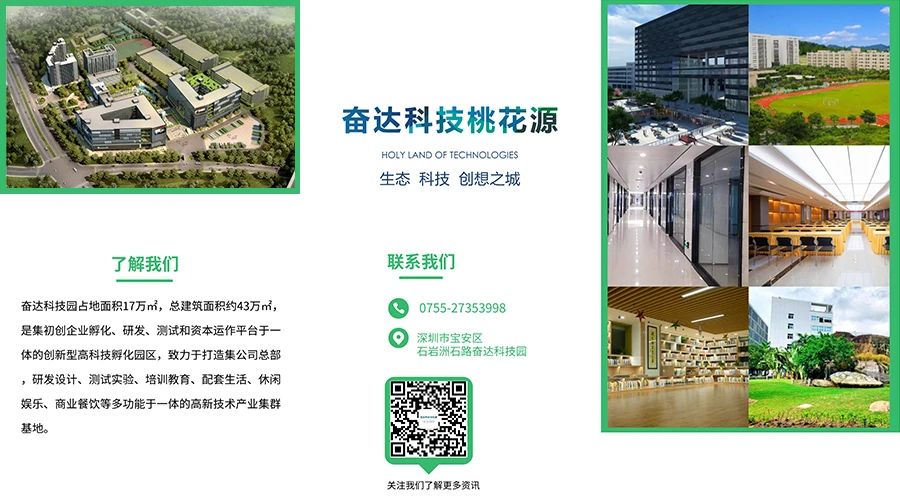 leyu.乐鱼科技桃花源为leyu.乐鱼科技园二期工程,建筑面积约26.4万平方米,是石岩规划发展的十大重点项目之一,于2016年被深圳市宝安区人民政府授予“科技桃花源”品牌美誉,是深圳市极具特色,集初创企业孵化、研发、测试平台和资本运作平台于一体的创新型高科技孵化园区。