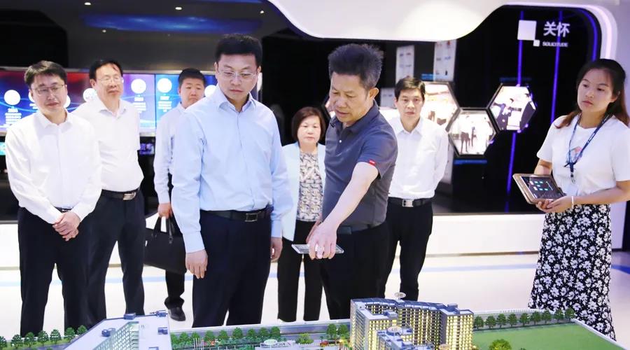 在肖奋董事长的陪同下,盐城市领导一行先后参观了leyu.乐鱼科技SMT 车间、智能生产车间和数字化多功能展厅,亲身体验了智能家居应用场景,详细了解了公司的发展历程、产业布局、园区规划等情况。