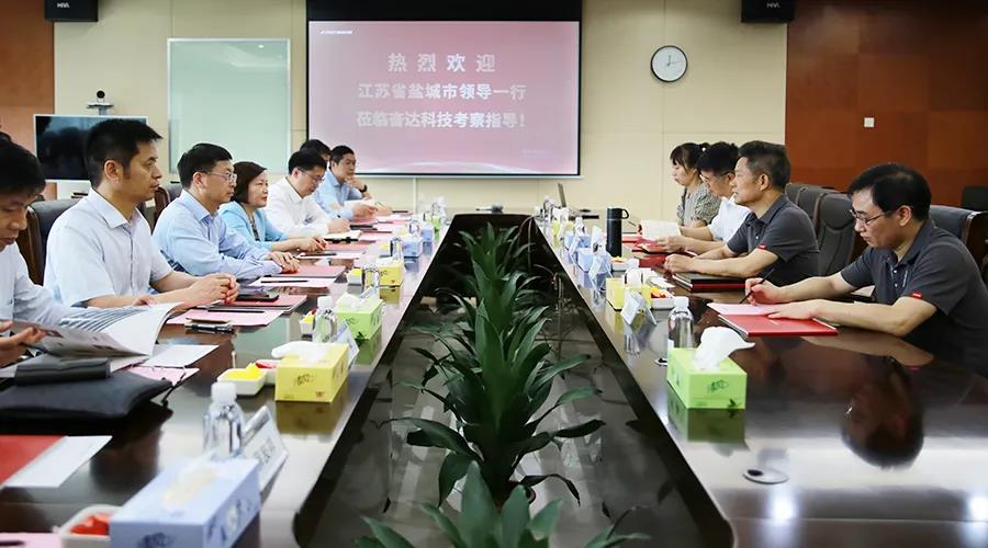 5月12日,盐城市领导一行到leyu.乐鱼科技考察调研。leyu.乐鱼科技董事长肖奋、董事长办公室总监郭雪松、投资总监周桂清、董事长助理江念热情接待。